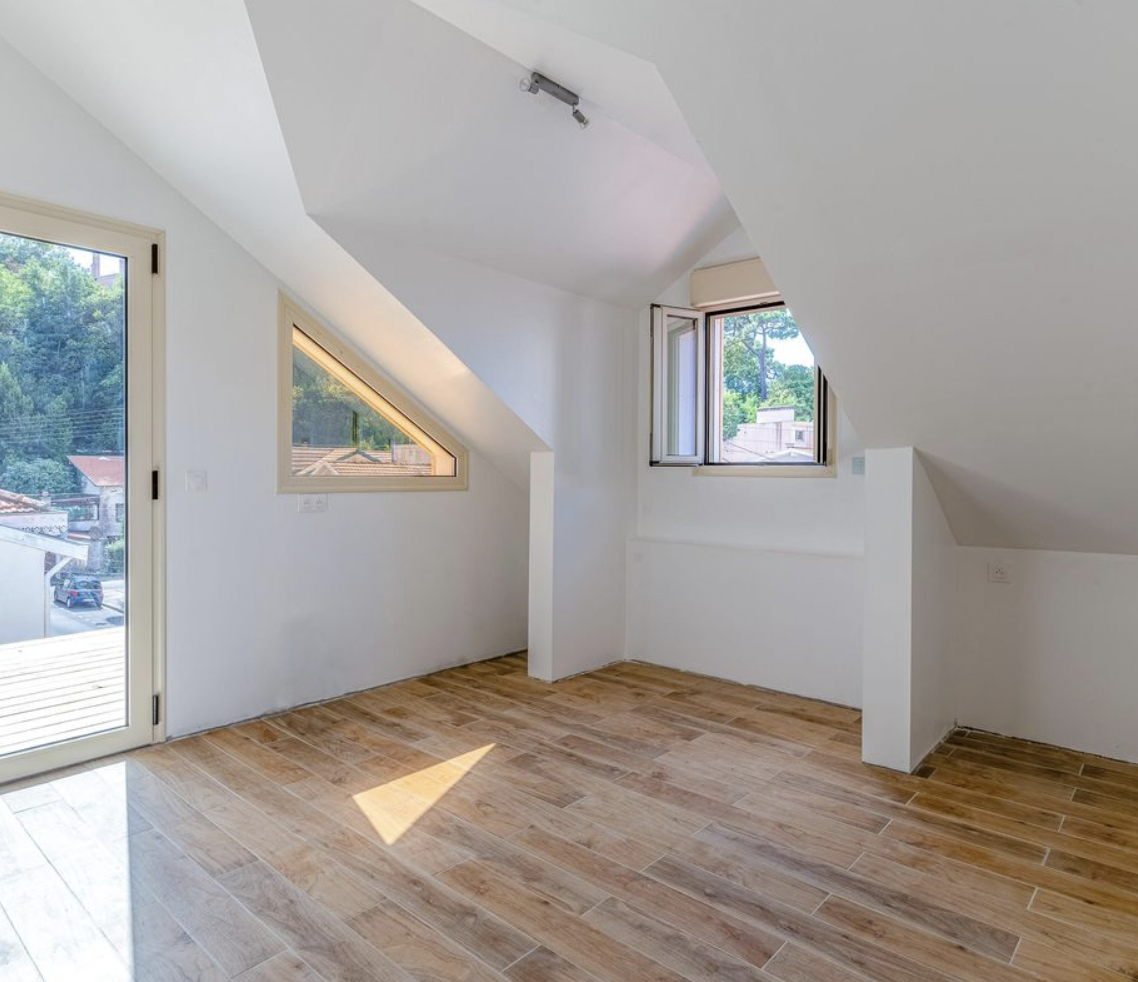 Un escalier mène à une pièce dominante de 10 m2, offrant une vue panoramique à 270o sur les villas de la ville d’hiver. Cette pièce polyvalente peut être aménagée selon vos désirs : chambre, bureau, salon ou salle de jeux.