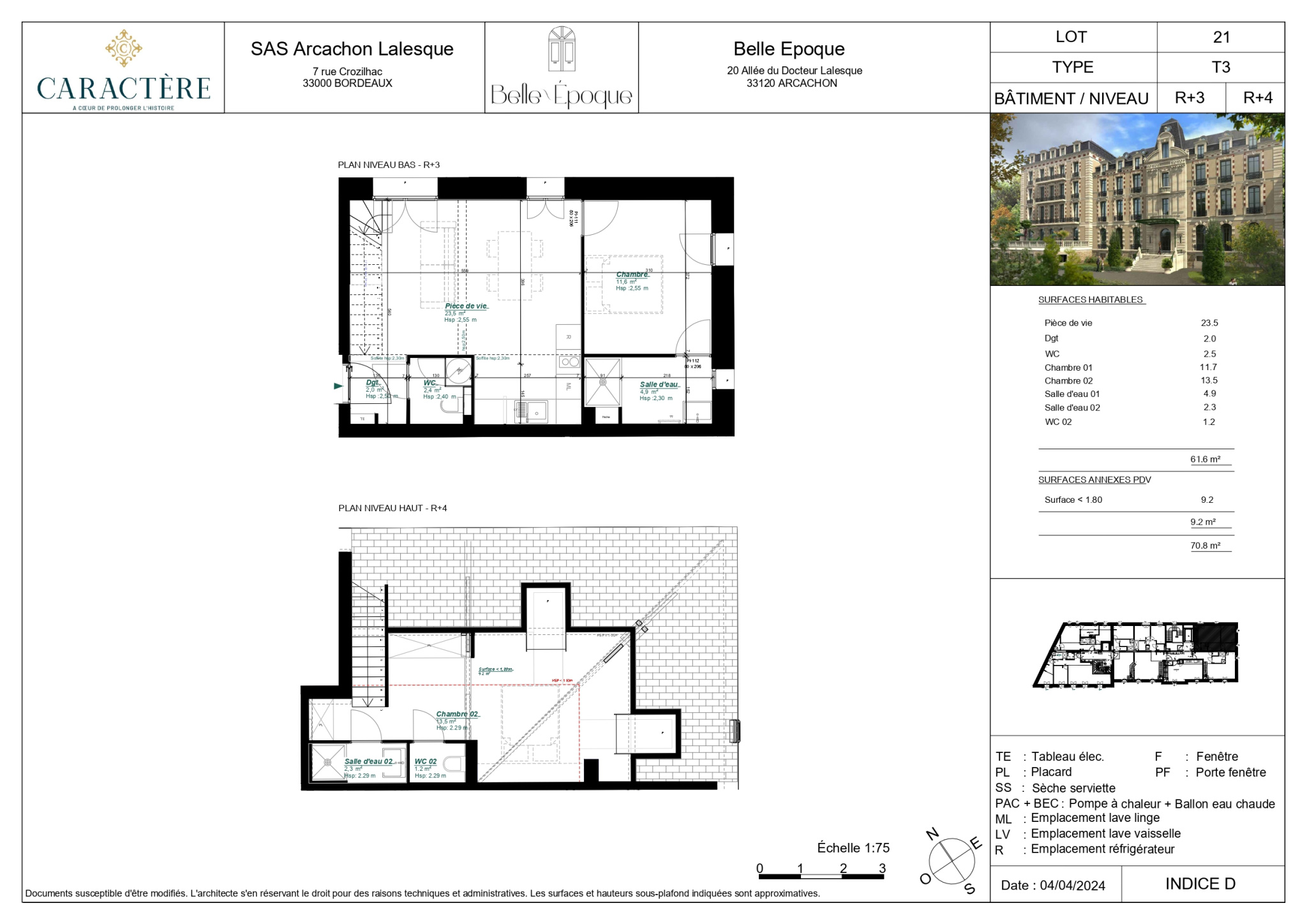» Surface habitable : 61.6 m²
