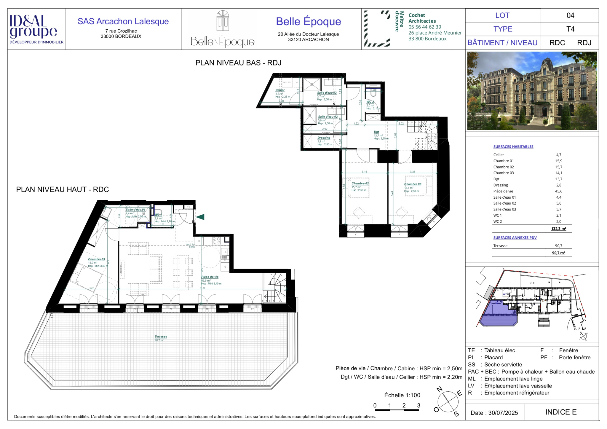 L’appartement offre une spacieuse et lumineuse pièce de vie, trois chambres, ainsi que trois salles d’eau aux finitions contemporaines. Il bénéficie également d’un cellier pratique pour le rangement. Son exposition sud-ouest assure une belle luminosité tout au long de la journée, et son atout majeur réside dans sa terrasse exceptionnelle de 90,7 m2, un espace extérieur rare dans la Ville d’Hiver.