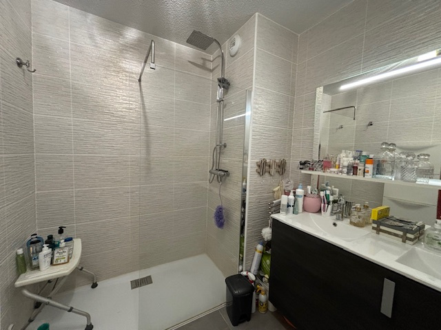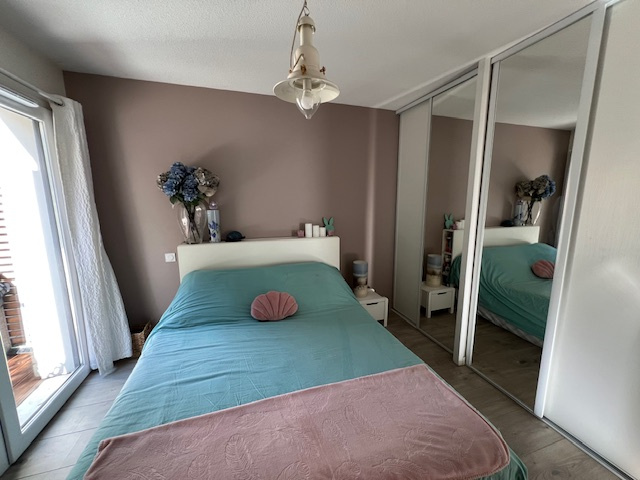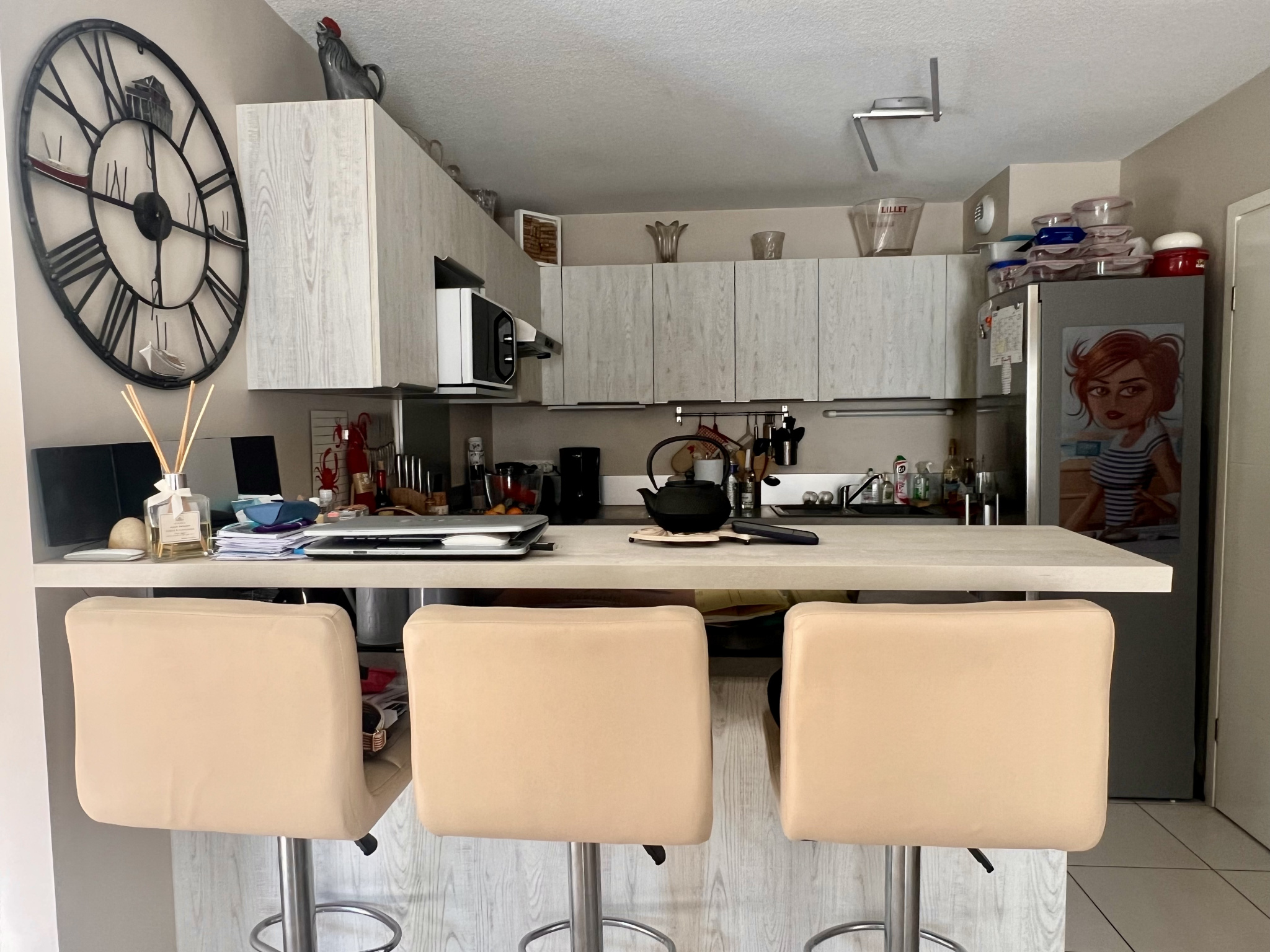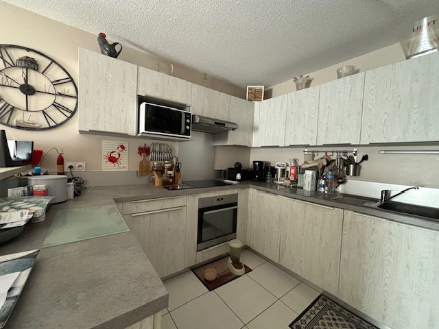 L’appartement se compose d’une entrée avec rangement, d’une cuisine américaine entièrement équipée ouverte sur un séjour lumineux, de deux chambres avec placards intégrés, d’une salle de bains, d’un WC indépendant et d’un cellier. L’ensemble est fonctionnel, moderne et soigneusement entretenu.