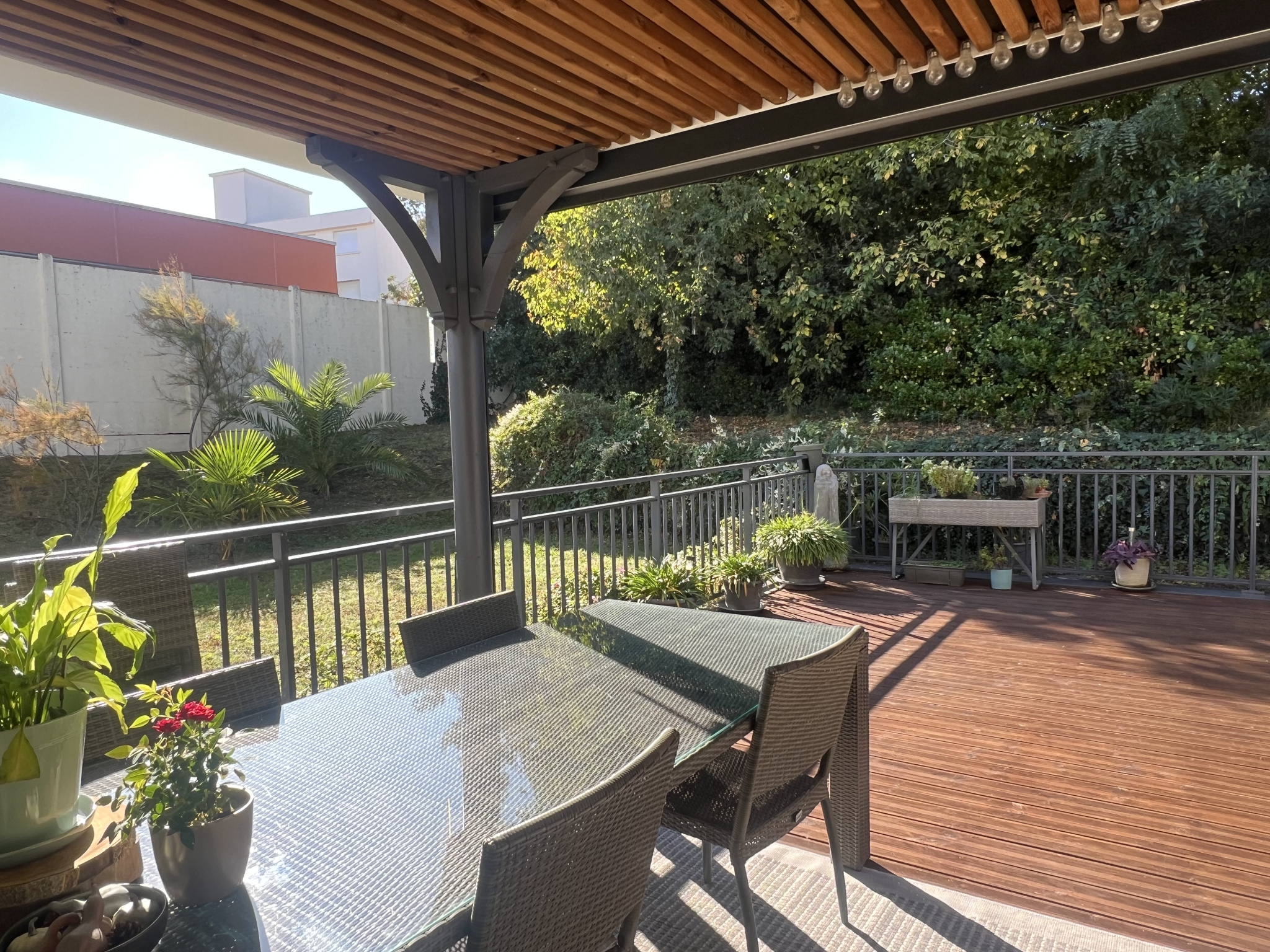 Sans vis-à-vis et entouré d’un jardin paysager, il bénéficie d’un calme absolu et d’une belle luminosité. Vous profiterez d’une magnifique terrasse de 46 m2, dont 12 m2 peuvent être fermés sous pergola.