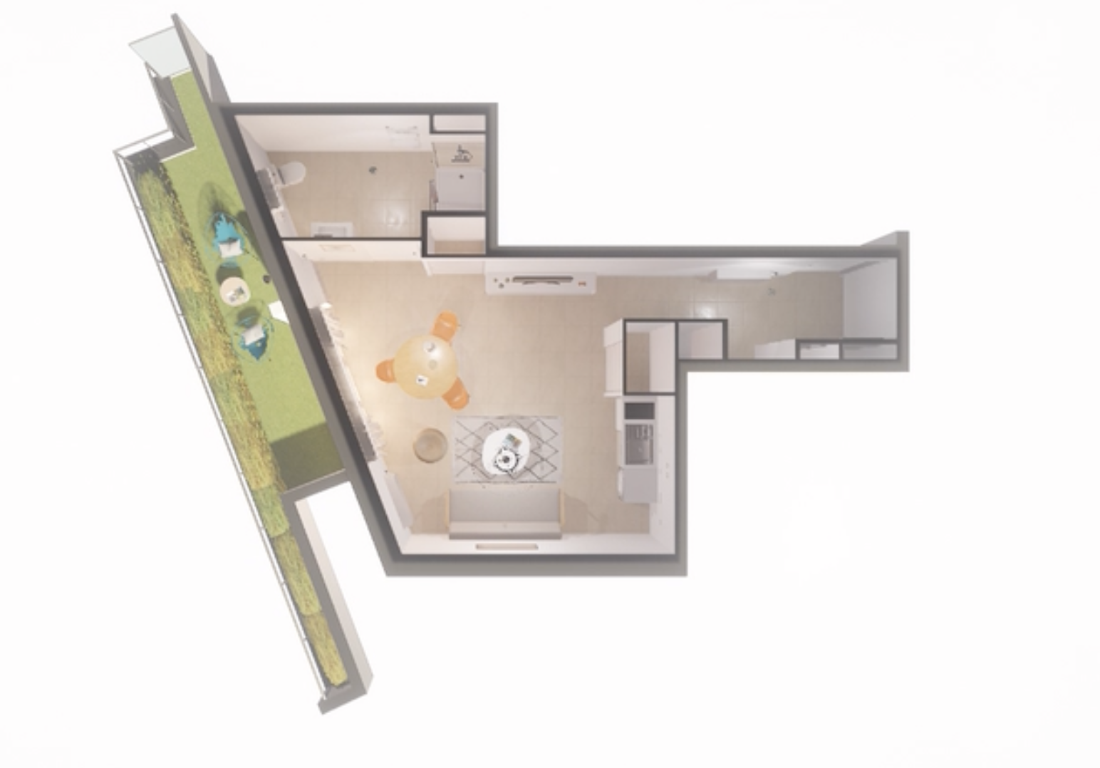 L’appartement se compose d’une belle pièce à vivre ouvrant sur un jardin privatif de plus de 10 m2, d’une entrée par dégagement, et d’une salle d’eau avec toilettes.
